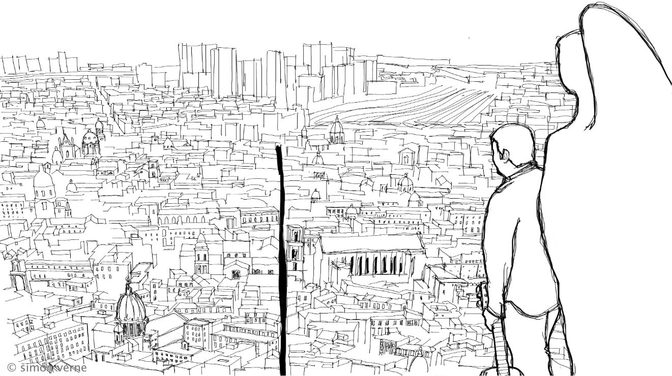 #Art. Another #drawing, borrowing #illustration techniques from the world of #Comics and #GraphicArt, this time exploring the themes of #architecture and light to conjure an oneiric atmosphere.